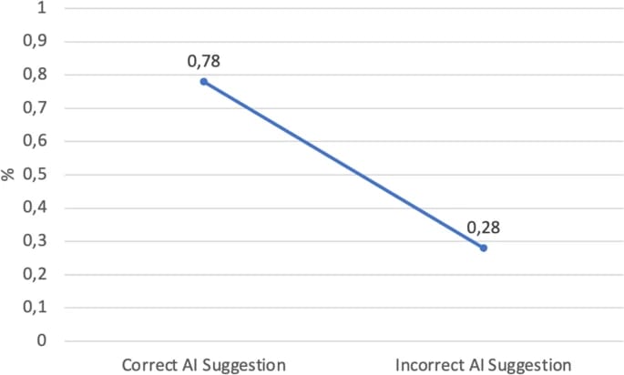 Conclusions: The authors conclude that AI suggestions can have a significant impact on radiologists’ decisions, especially when they are incorrect. They suggest that explainability inputs and attitudinal priming are not sufficient to overcome this influence, and that more research is needed to understand how to design and deploy AI tools that can support radiologists in a more effective and ethical way.