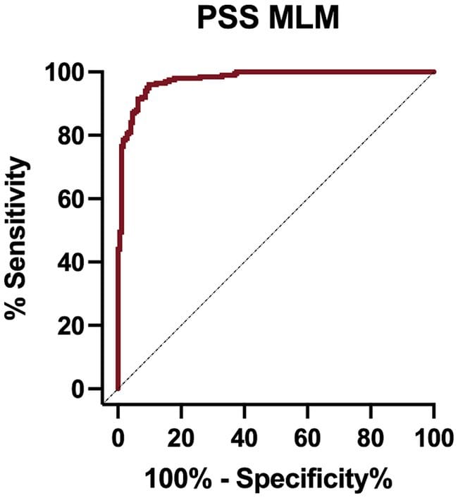 The PSS MLM achieved a sensitivity of 94.3% and specificity of 90.5%. It showed high accuracy in diagnosing PSS, particularly in differentiating PSS subtypes with varying sensitivity and specificity. The PSS SubCat MLM had a general accuracy of 85.7% in predicting subtypes, with significant variability based on the specific PSS subtype.