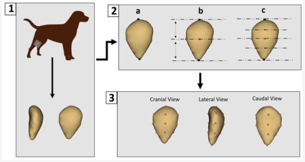 Breed information was unavailable for most dogs, preventing breed-specific analysis. This limits insights into how breed diversity affects patellar morphology. Additionally, while body weight showed only a marginal association with size, functional adaptation and locomotor demands may also contribute to morphological differences.