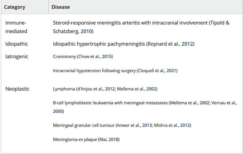 Causes of diffuse pachymeningeal contrast enhancement in dogs