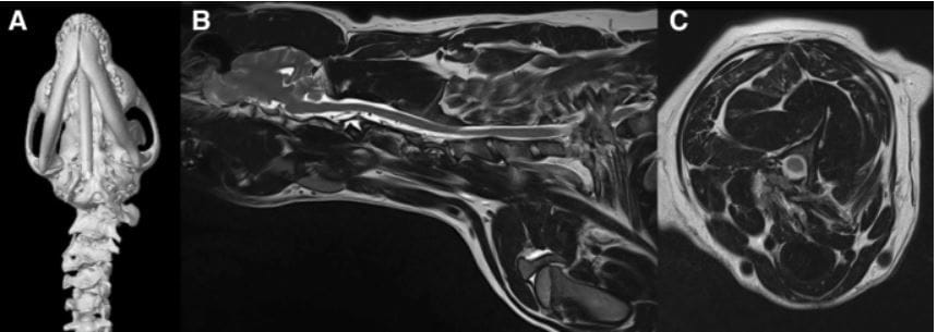 -Clinical Presentation: The most common signs were tetraparesis, proprioceptive deficits, cervical hyperesthesia, and scoliosis.