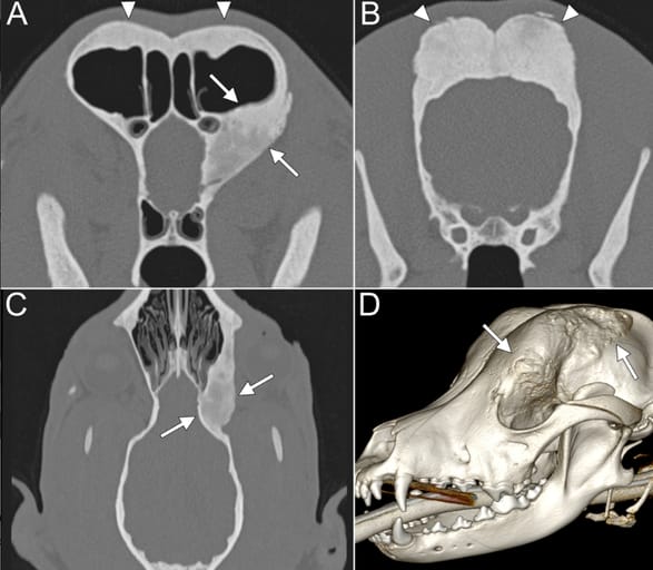 CHS should be considered as a differential diagnosis for exophthalmos or epiphora in young dogs, particularly when skull thickening is detected. Diagnostic imaging and histopathology are essential for confirmation. Further studies are needed to determine breed predisposition and disease progression.