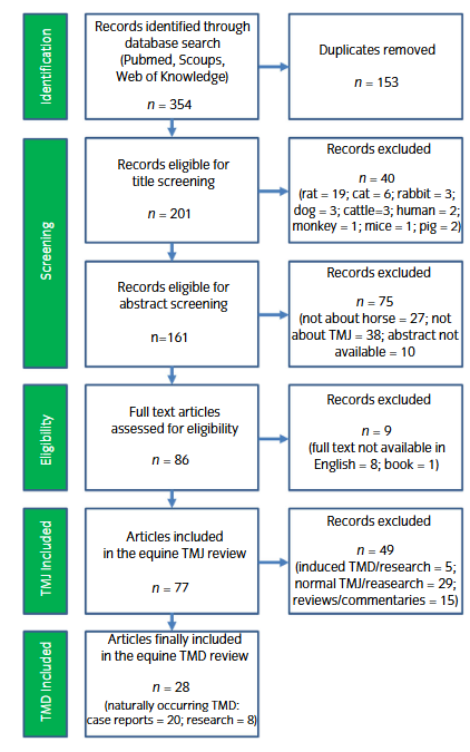 -Case reports and research articles on equine TMD were included.